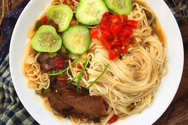 主料:面条 (200克) 羊肉 (500克) 黄瓜 (1根)