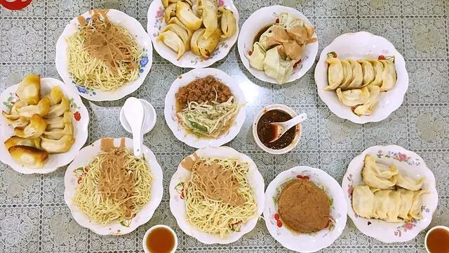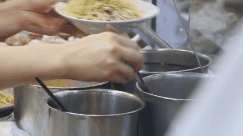 厨窗里打面的阿姨一般有两位,一位负责称面,面前有个天平称,开市前先分二两三两四两把面条称出来,放盘子里再一层层叠的老高,以应对饭点的人潮。另一位打面阿姨手式极快,她可以用一只手同时端三盘面条,另一只手蜻蜓点水般从面前的生抽、醋、花生酱和辣油盆里舀取调料撒在面上,比例不差分毫。
