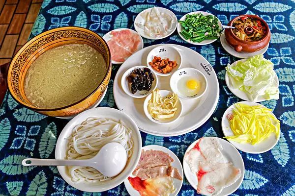 吃什么:摩梭人的猪膘肉、丽江汽锅鸡、吹肝、丽江豆焖饭、腊排骨火锅、丽江粑粑二块、米灌肠等