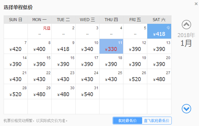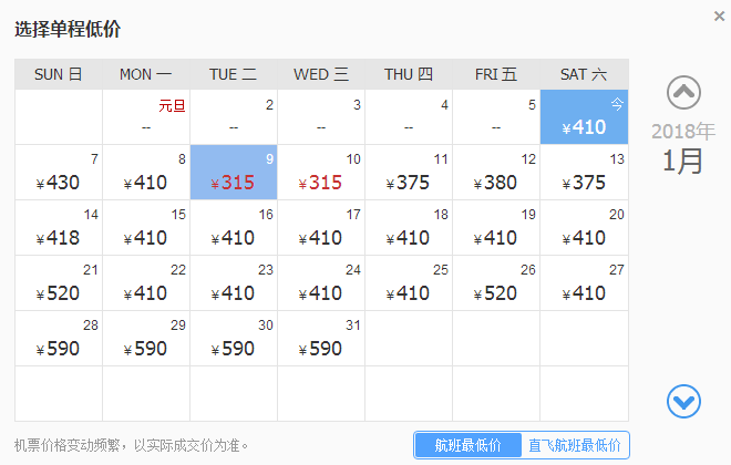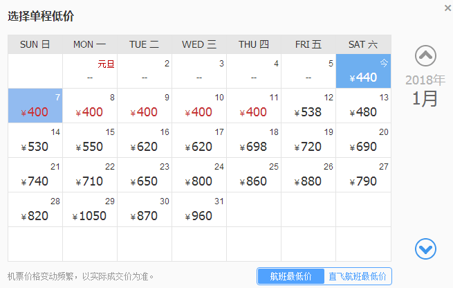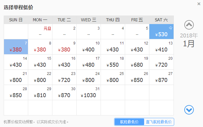 1、整理时间为2018年1月6日,特价机票价格经常浮动,请以实际价格为准