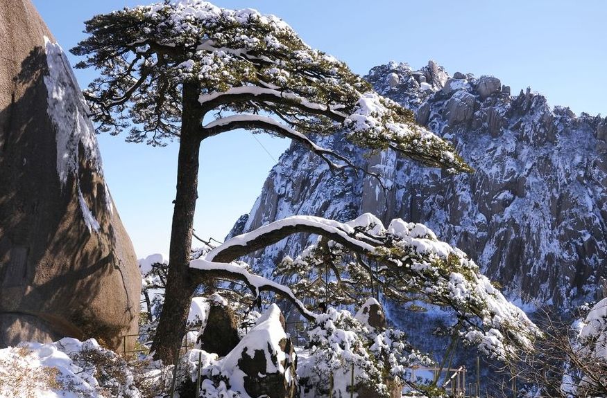 黄山有“五绝”,奇松、怪石、云海、冬雪、温泉。其中冬雪只有冬季才可见到,而云海在冬季出现的概率要远远高于夏季;绝美的雾凇、云海和日出,把黄山装扮成人间仙境,黄山从每年的12月至翌年2月为最旺雪期。