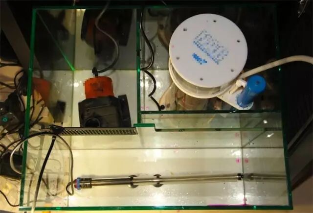 因为如今底缸的设备太多,什么加热棒的电源线、滴定的电源线、ATS(藻桶)的电源线,水泵电源线,蛋白质分离器电源线、冷水机水泵电源线等等,这么多的设备电源线排布在底缸当中,你说能不乱吗?我们也希望能有个清爽、规整的底缸,可实在做不到啊!