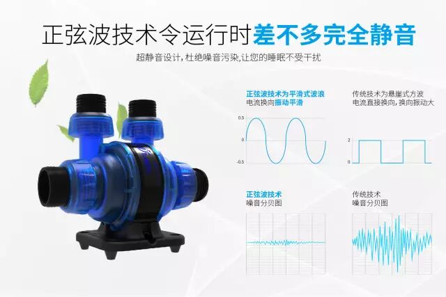 那么什么是正弦波技术呢?正弦波技术为平滑式波浪电流换向振动平滑,很好的克服了传统悬崖方波电流直接换向所带来振动大的弊端,使得水泵运行时能做到真正的静音。