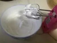 蛋白中加几滴柠檬汁(没有可不加,我就没加),把30g细砂糖分两次加入蛋白,用电动打蛋器将蛋白打至干性发泡(加糖容易打发一点),打好的蛋白可以先放入冰箱冷藏待用。