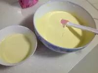 然后再分次加入炼乳,也是加一次,都要拌匀一次,不能偷懒,一定要慢慢拌匀。