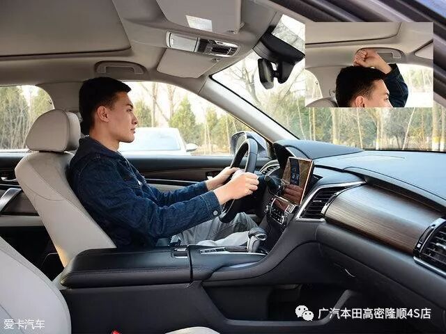 前排为体验者调整好的坐姿,后排头部空间为四指,腿部空间为一拳一掌,表现十分夸张。