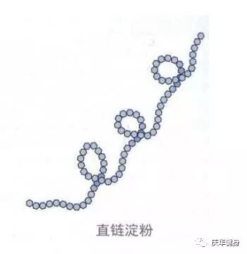 直链淀粉一抱团,淀粉酶就头疼了,这葡萄糖分子怎么摘啊,特别是藏里面的,很难找到头,没法摘,这热量不就没法吸收了吗?这就是传说中的抗性淀粉,土豆啊,米饭啊,含直链淀粉较多的淀粉冷却后易生成抗性淀粉。