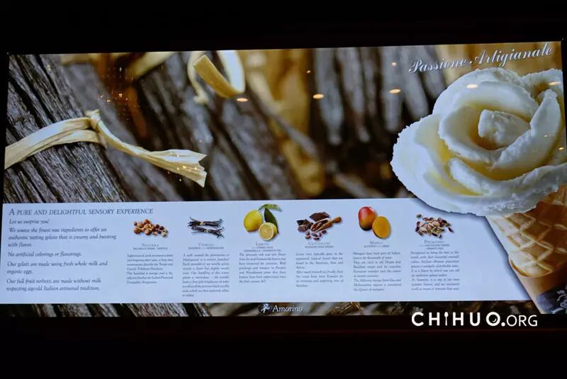 Amorino讲究原材料的选择,意大利西西里岛特产的开心果、马达加斯加和大溪地两种口味的香草豆荚、原产于意大利用于制柠檬酒的费米耐罗柠檬、印度芒果以及厄瓜多尔黑巧克力……全球顶尖的原材料无疑对做出高品质的Gelato至关重要。