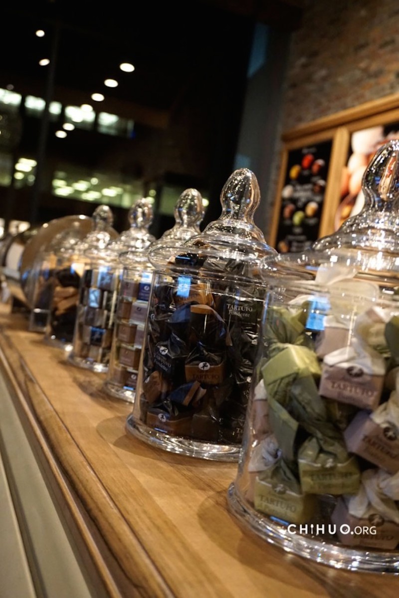 巧克力被装在漂亮的玻璃罐里,据说只有春天和冬天出售。除了零售的,还有精致的礼盒装。