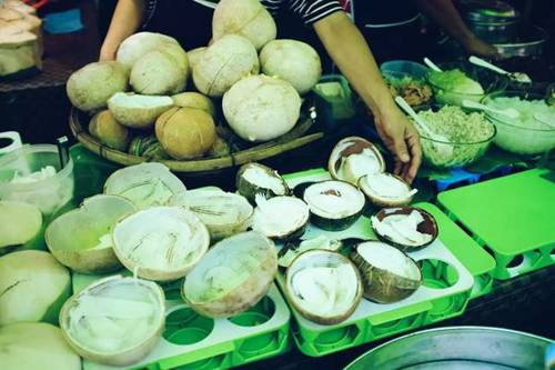 所以,吸铁石必须开启消暑模式。没有在周末市场吃一碗椰子冰淇淋,请不要跟朋友炫耀来过周末市场!最受欢迎的一家位于地铁口Kamphaeng Phet站入口处,大大的绿色太阳伞就是我们的暗号~