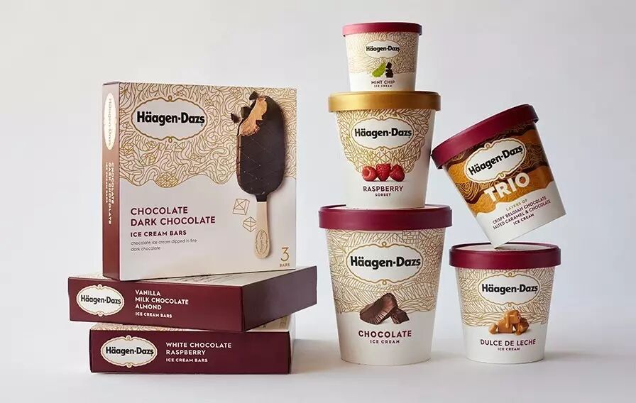 颜值:经典的哈根达斯红金配色,盖子上画有主要成分的图片,打开有一层塑料