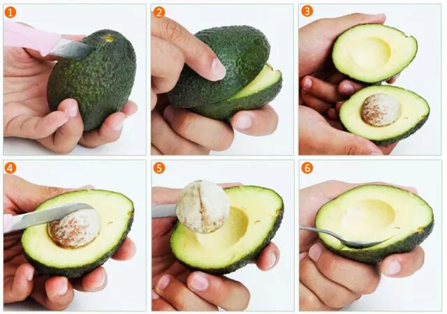 最直观的就是看颜色和按压果肉,黑绿色和软软的果子,已经熟透,果肉可能已经烂了,这种不要选。如果软硬适中,稍微可以感觉按得动,那是最适合食用的状态。用刀切开,里面是嫩嫩的黄绿色,很清淡的颜色。没有黑斑是最佳状态的牛油果。