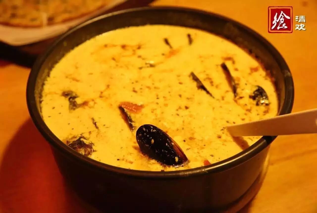 法式紫贻贝浓汤:精选大个青口贝,柔韧鲜香,汤底浓稠,口味浓郁。