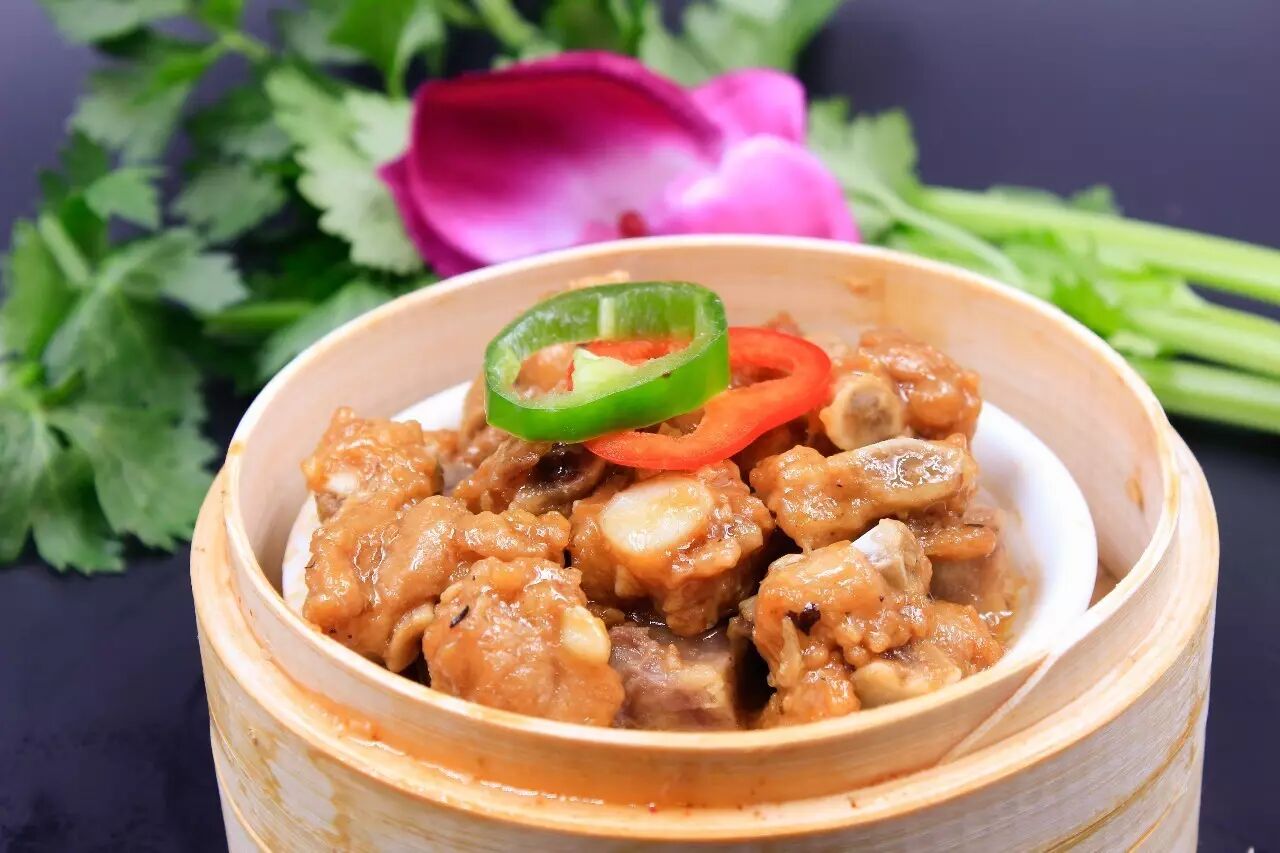 广式的蒸排骨,道道工序都是近乎苛刻,为了使肉的口感到达最佳,除了在选材上的把握,还有对排骨入锅前的处理,需经按摩和敲打把肉敲紧实了,蒸前淋油,而且必须小笼小笼地蒸,文火慢攻,这样的成品入味异常,绵软细嫩。