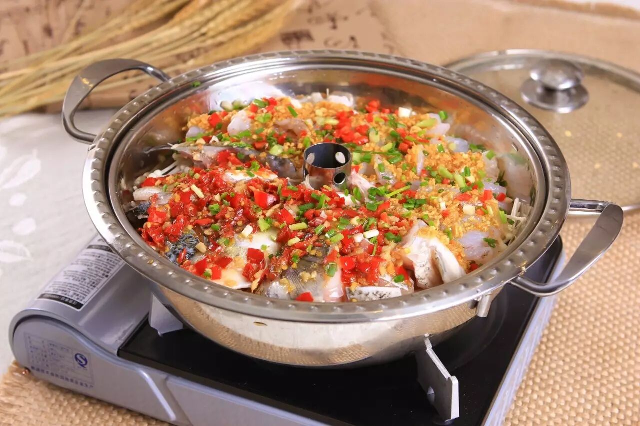 在卡斯炉上给虾和鱼做桑拿汗蒸,只消在餐桌上等待片刻,揭锅便是扑面的鲜香,花鲢鱼头的营养经由卡斯炉的烹制,一点一点都融在了汤汁里面。