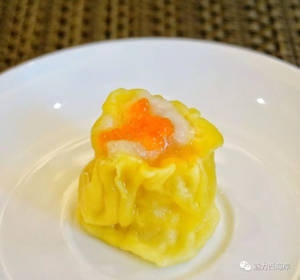 烧卖,标志性的黄皮让他在所有蒸笼类里尤其瞩目。猪肉打成馅,再加以蟹籽点缀,吃的是刚一入口有一些硬和弹压的口感,之后是越嚼越有味,肥美而不膻。