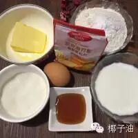 低筋面粉170g、椰子油3汤匙、白砂糖40g、鸡蛋2个、蜂蜜40g、牛奶120g、泡打粉2g、水果适量、冰淇淋球1个