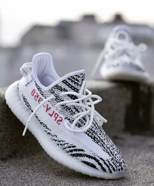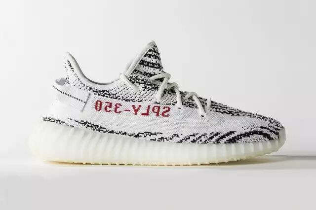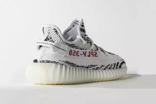 Yeezy Boost 350 V2 Zebra 以白色为鞋身主色调,同时辅以斑马标志性的黑色条纹装饰鞋身,而签名式的 SPLY-350 字样则由红色点缀,最后搭载白色 Boost 缓震中底呈现。