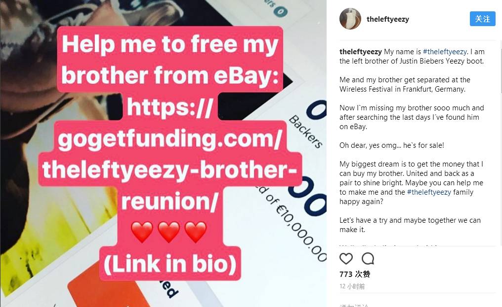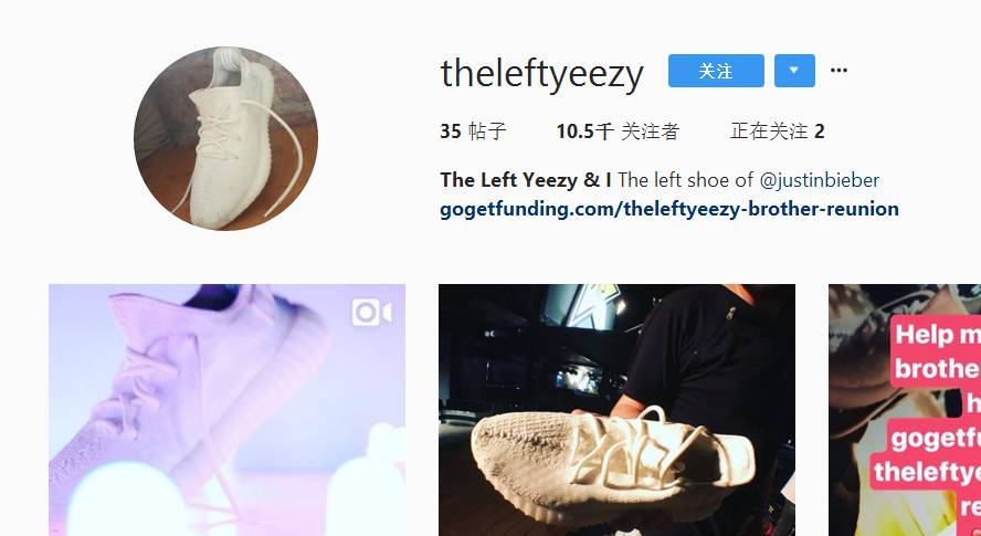 其中抢到左脚的幸运儿为这只鞋子开了一个 Ins账户——theleftyeezy,短短几日已经吸引了上万人关注,并且仍在持续增加中,都是来看这个幸运儿和这只左脚椰子的“幸福日常”吧!