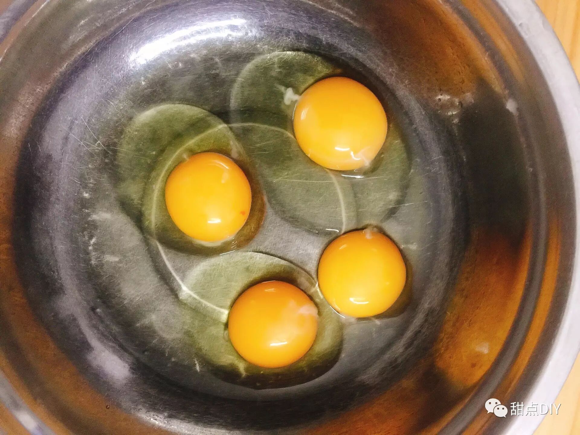 5. 另取一个碗打入3个全蛋和一个蛋黄,今天鸡蛋超级新鲜