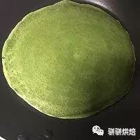 14. 一层抹茶饼底,一层奶油,如此反复直到将所有饼底都抹完。