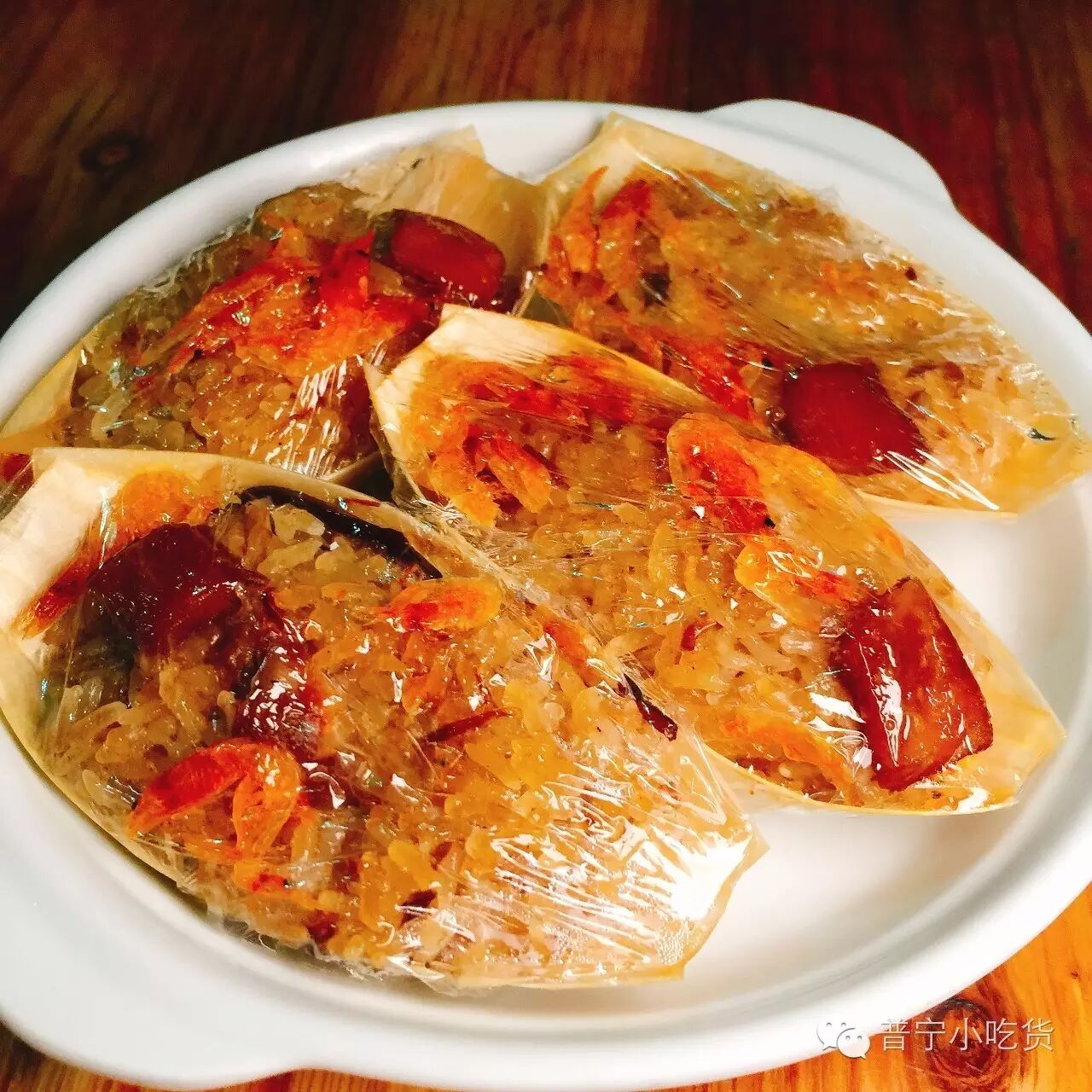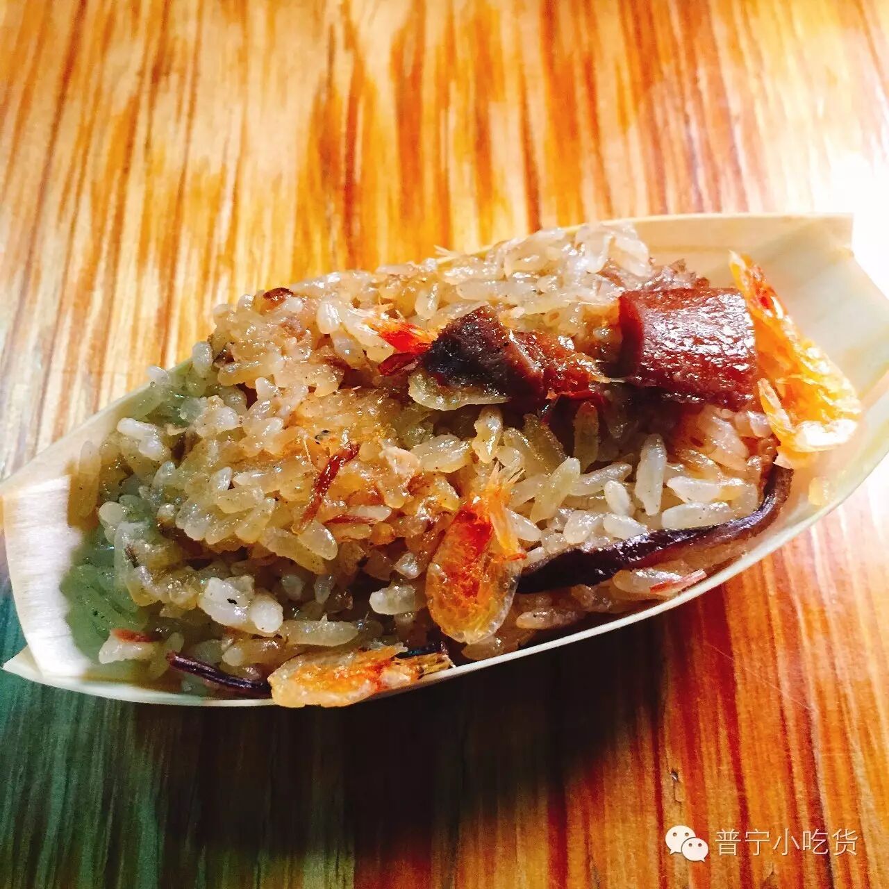 它是用竹片做成船的形状,放入糯米、香菇、腊肉、虾米等,包上保鲜膜在蒸笼上弄熟的,味道有点像粽子,但多了竹子的清香。