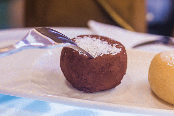 喜欢糯米糍的食客可能尝试过各种不同风味的上品,但这里的巧克力味糯米糍,一定会丰富你对这一品类的想象:糯米糍很实在的被厚厚的可可粉包裹,纯可可粉略苦,椰蓉清香。
