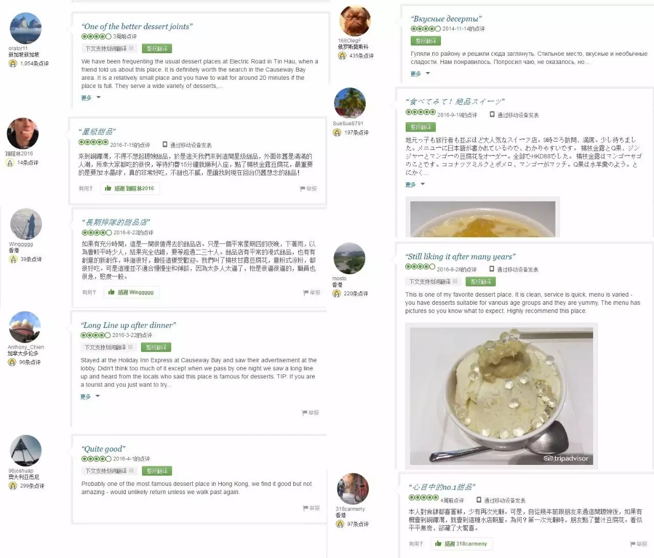 有名的TripAdvisor上留有世界各种语言对聪嫂的称赞。
