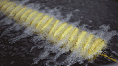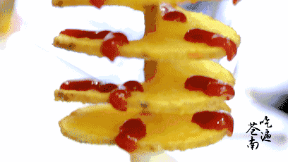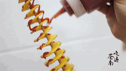 用了整颗马铃薯,特制机器切成螺旋形片状,再用最佳的火候炸至金黄,最后撒上特制香料,薯香逼人,还没吃就感觉到了酥脆~