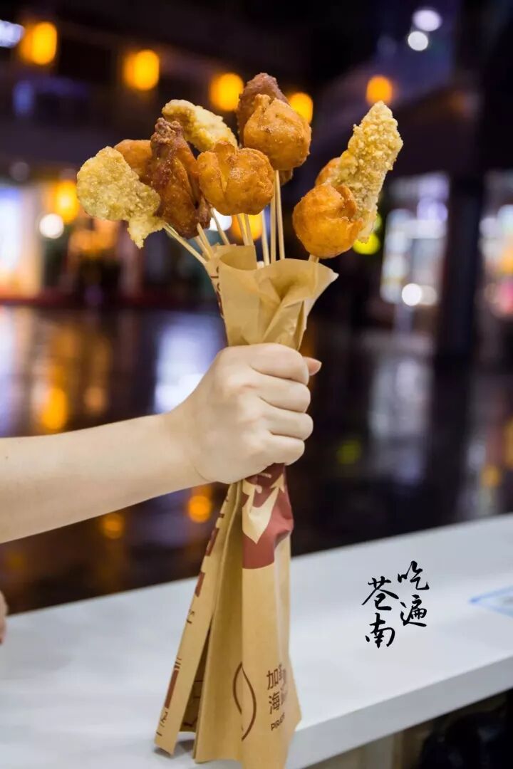 鸡翅、鱼丸、鸡排小吃花束,这可比什么鲜花实用多了!而且又有创意,要是有男生送我这个马上答应啊,那么用心!