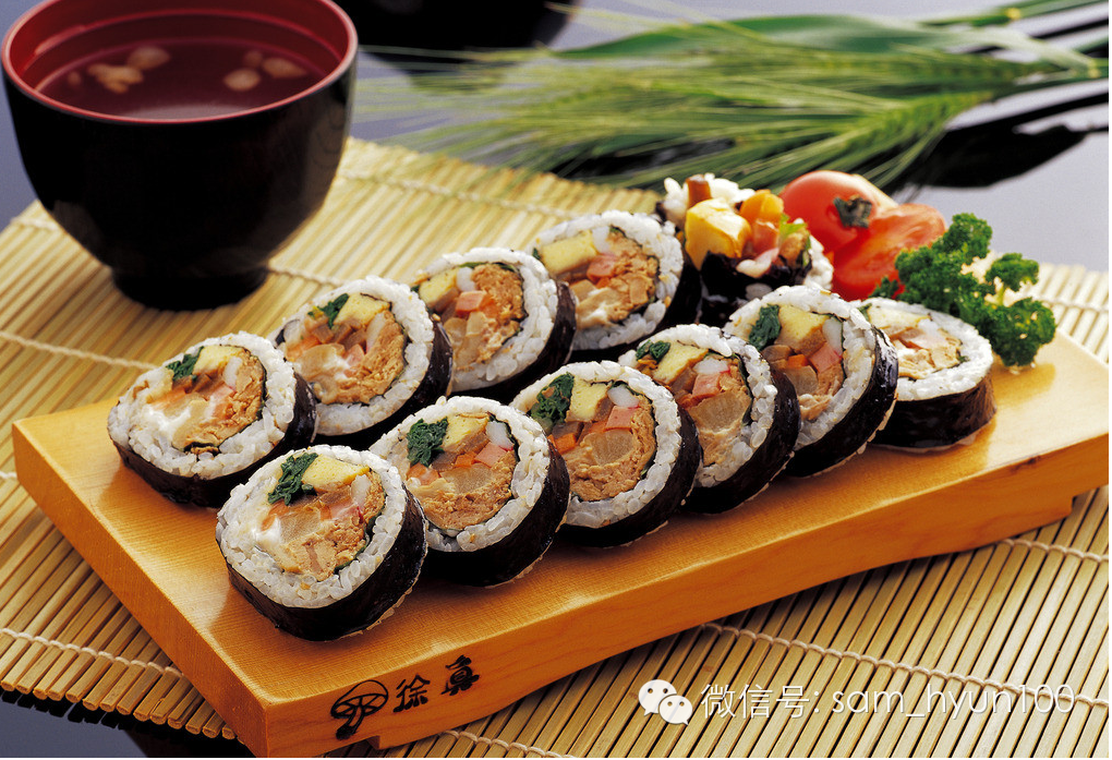 简单而美味的紫菜包饭由日本寿司演变而来,主要的食材由米饭、紫菜、鸡蛋、胡萝卜等组成,往往是用海苔将焖熟的米饭和各种蔬菜等材料卷成一个饭卷,并切成适当的大小来食用,由于具有制作简易、携带方便的特性,所以无论是在外出游玩时还是在枯燥的长途旅行中,都是一道既健康又美味的“快餐”。紫菜包饭做法看似简单,却很有技巧,除了米饭的调味比较讲究外,卷什么怎么卷也很重要!