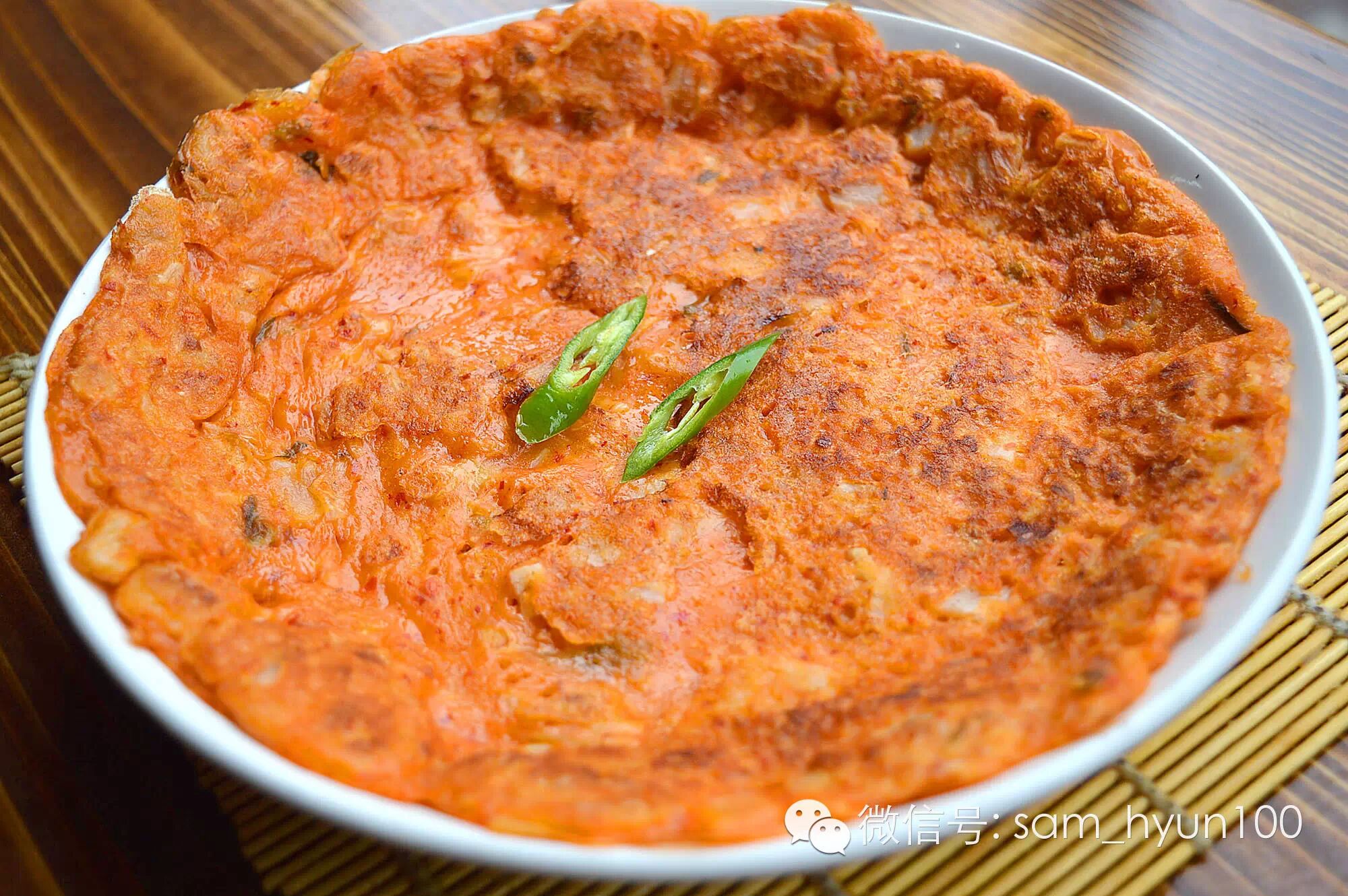 辣白菜是韩国标志性的食物,由辣白菜衍生出的美味也是丰富多样,除了辣白菜汤之外,还有经典的辣白菜饼,甚至辣白菜包子。辣白菜饼也就是常说的“泡菜饼”,它是典型的韩国家常菜,只要简单的面粉水加上泡菜,加少许调料,就能成就一道风味独特的美味。