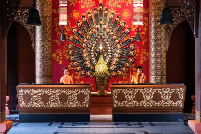 ▲随处可见纯金色孔雀装饰,这在当地象征着身份极为尊贵