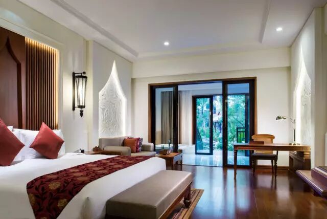 所有房型均配备饱览园林美景的超大独立景观阳台,午后可以静静坐在躺椅上领略原汁原味的傣族风情。