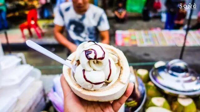 60Baht,强烈推荐,满大街都是这货~上面是冰淇淋 ,下面刨出来的是椰子肉,有嚼劲一点,配上上层冰冰凉的奶香,口感很棒!