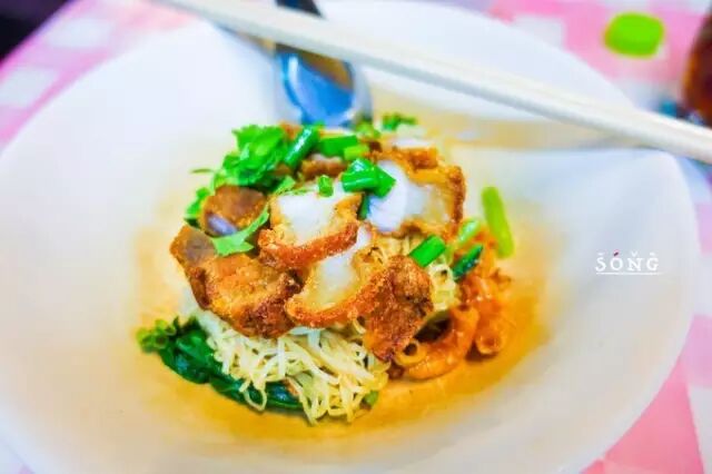感觉泰国的炸物有魔力一样~猪肉肉质明显,四周被油滚了酥脆~面条过了水,拌着酱油汤,爽滑可口~赞!