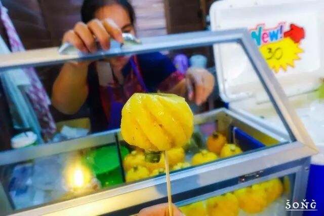 25Baht,泰国小菠萝的品种叫“布兰”。据说只有泰国当地才有~只有拳头大小,菠萝味儿特别浓郁而且特别特别甜~而且吃完不会发涩!强烈推荐!!!