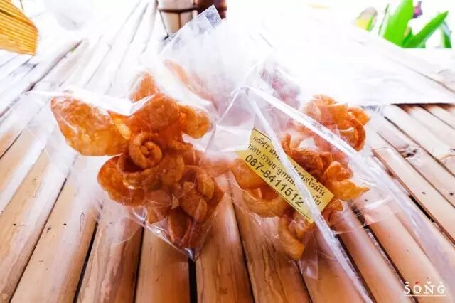 泰国的肉皮是零食~10Baht一包,很香很脆,像有魔力一样吃了根本停不下来~完全秒杀那些薯片虾条~