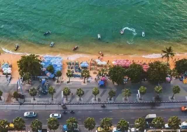 泰国海岛除了普吉,芭堤雅也有沙质细腻的海滩、清澈的海水,以及长达15公里的海岸线。海滩上也有各种各样的水上运动,整天都是热闹欢乐。