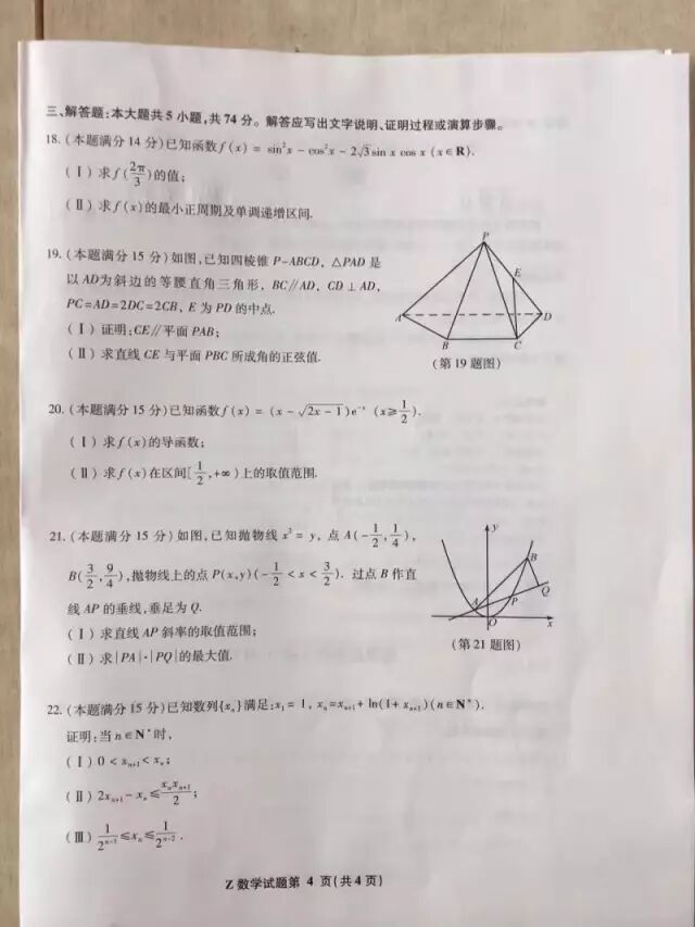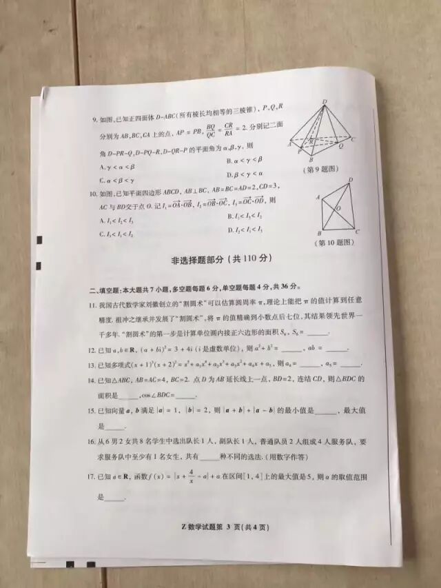 那么,到底题目难不难呢?知否君找来了今年的数学考卷,很可惜,只有第2、3、4页