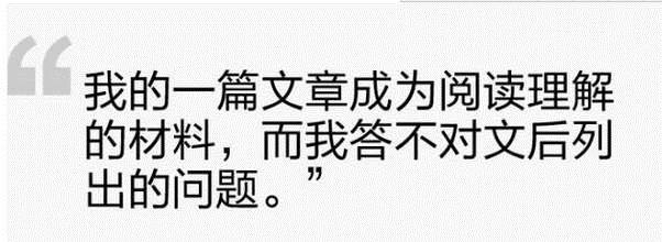 巩高峰忍不住吐槽,自己的文章被用在阅读理解上,可是“我是真做不出来,我估计我做出来还没有他们做得好,现在标准答案没出来,我怎么知道自己想要表达什么啊,我又哪里知道结尾有什么意义。”