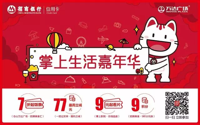 新户招好礼:招行信用卡7-8月新持卡客户至掌上生活可享受9元起观影。