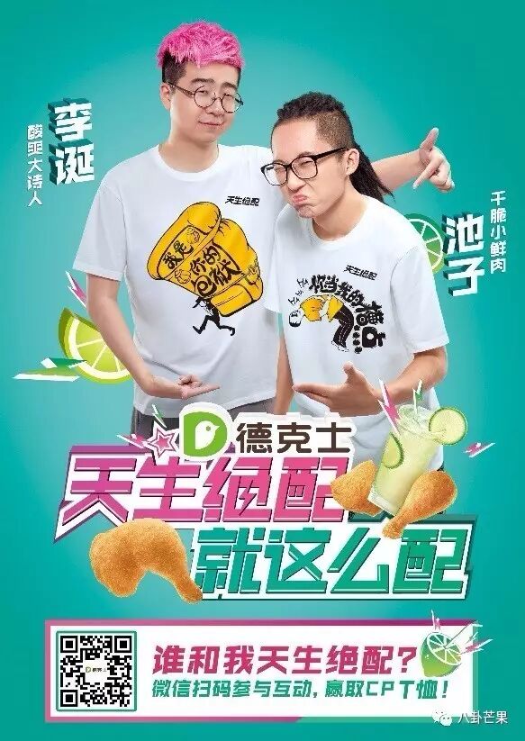 两位明明就配得要死,就不要傲娇啦!同样是天生绝配的,还有他俩给打广告的德克士的“鸡排大亨+鲜萃柠檬饮”!忘掉炸鸡配啤酒吧!只有清爽的德克士鲜萃柠檬饮,才能化解炸鸡的油腻口感,甚至带来一丝柠檬清香,一个解谗,一个解腻,真乃天生绝配!