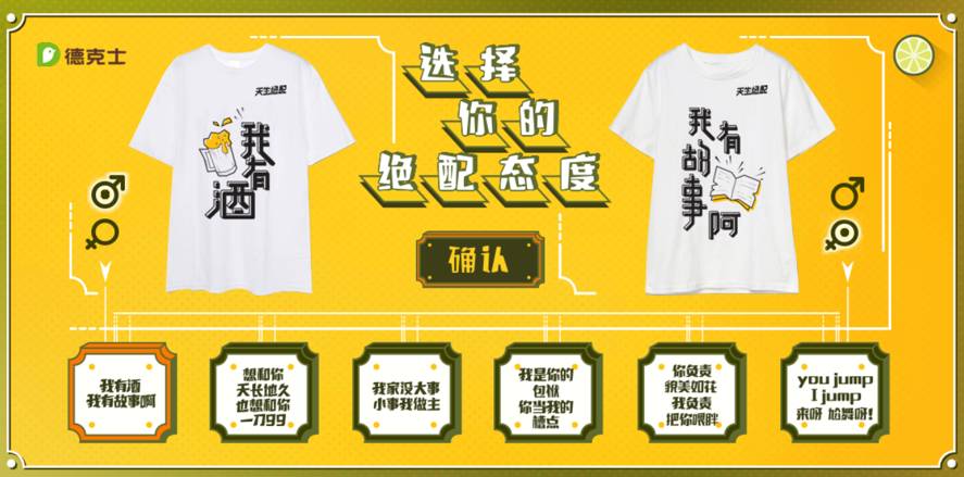 现在你也可以像他们一样,定制自己的“绝配态度”T恤,点击“阅读原文”,挑选定制吧!还可以获得德克士鲜萃柠檬饮的五折优惠券呢!
