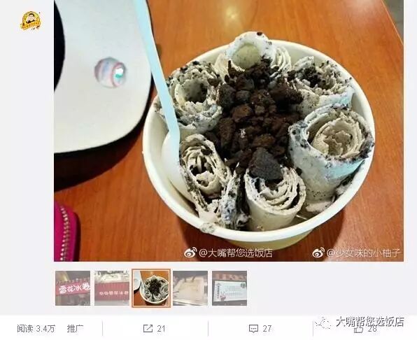 推荐理由:我终于吃到了泰国雪花冰卷,没想到这也有卖的,有好多种口味,奥利奥口味是用纯牛奶和奥利奥碎做的,牛奶味刚刚好,吃起来有点像雪糕。和炒酸奶的口号完全不一样,不会有很冰的感觉。不过店家给的勺子不太方便吃,冰卷化的比较快。