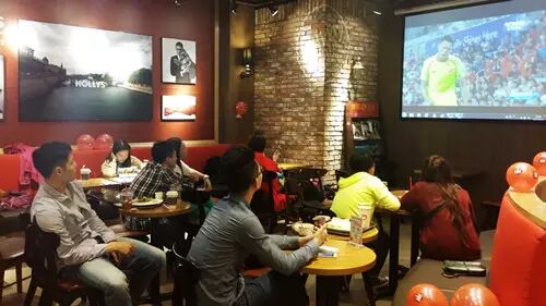 HOLLYS COFFEE以羽毛球为主题,当然少不了平时球迷的观赛活动,再配上一杯羽毛球洒粉的卡布奇诺,绝对堪称完美。饮品方面红薯拿铁、乳酸菌冰饮、芒果斯慕昔都是本店的特色。如果觉得饿了,黑莓华夫、奶油蘑菇汤、蜂蜜法式面包将会是不错的选择。咖啡店除了经常举办商务会议、讲座、生日聚会以及球迷观赛活动,还常常会有明星光顾。店家表示,希望与更多的球迷、喜爱咖啡的朋友一起来分享咖啡文化和慢节奏的生活态度。