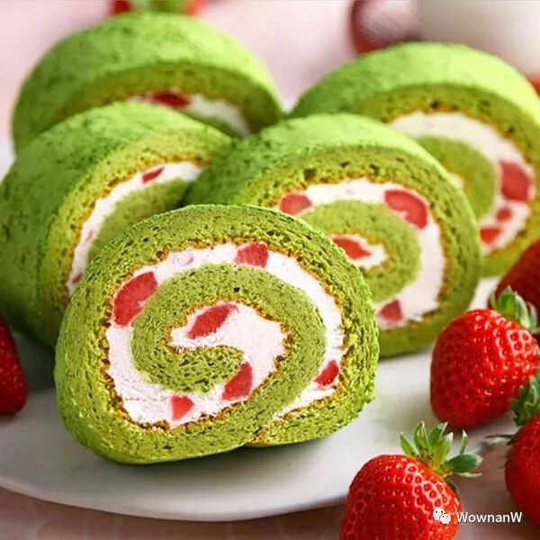 12 将蛋糕卷起来冷藏定型一段时间,然后就可以切片了