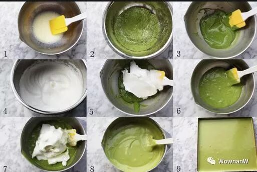 蛋黄5个,白糖30克,色拉油40克,牛奶40克,低筋粉75克,抹茶粉10克