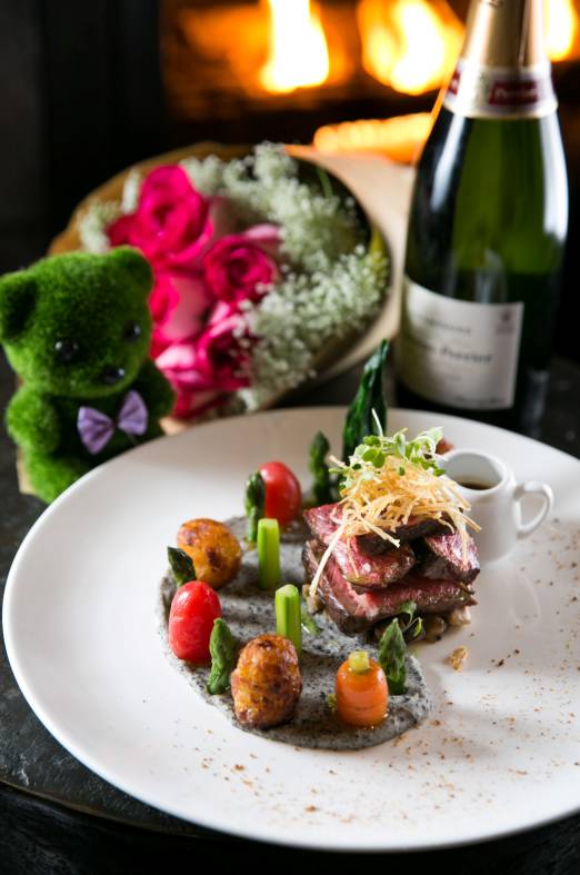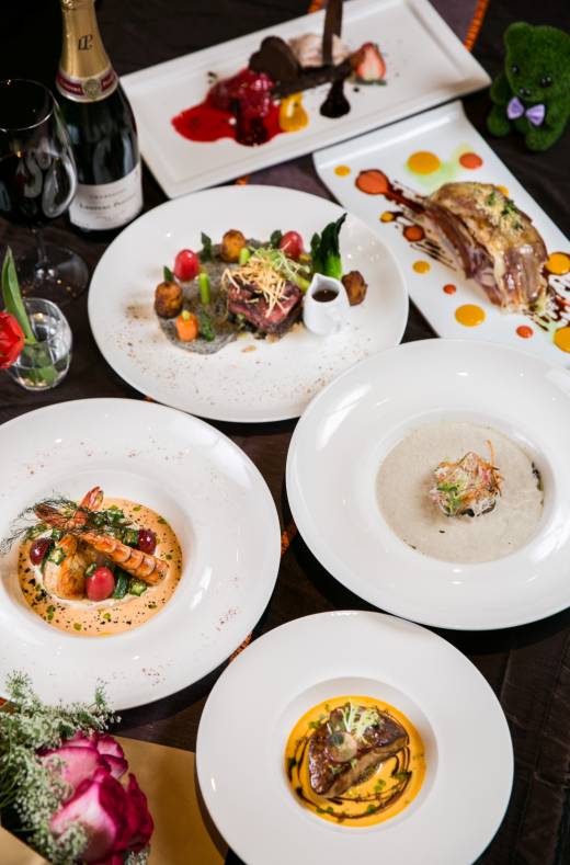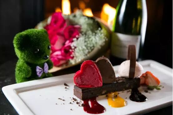 情人节奢华5道式双人晚餐仅限2月14日当天,如提前预定并提交20%的定金,可享受套餐价8.5折优惠。