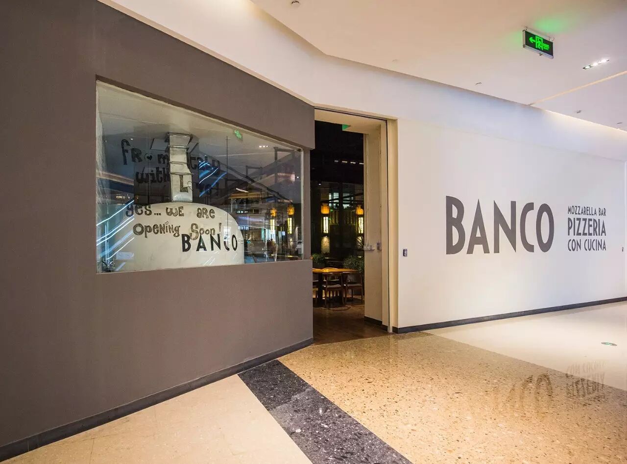 BANCO门口的烤炉很显眼,让人看到就有种进去吃上一块披萨的冲动。店里的落地窗位置尤其抢手,白天喝杯香浓的意式咖啡,看窗外喷泉边人群休闲慢生活,夜晚点上一杯红酒,杯光闪烁,倒影出涟漪的湖景。